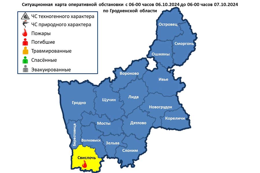 За минувшие сутки на территории Гродненской области произошел 1 пожар: Свислочский район — пожар в жилом доме. Люди не пострадали.