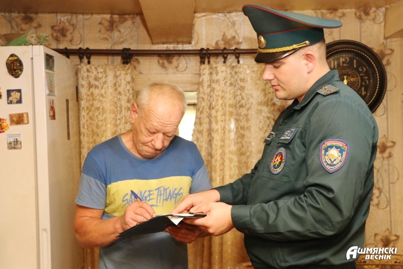 Свою работу проверяющие начали после обеда. «Одинокие пенсионеры должны быть дома», – высказывает предположение управляющая делами Иоланта Булавская. И в первом же доме нас встречает хозяйка – бабушка далеко за восемьдесят. Пожилая женщина к зиме подготовилась. Печка находится в исправном состоянии, дрова заготовлены, в доме – порядок. С целью безопасности установлен АПИ с выводом светозвукового устройства оповещения на улицу. При посещении очередного домовладения представитель Ошмянского РОЧС напоминает соседям о том, что у одинокой бабушки установлено такое устройство и в случае чего следует незамедлительно сообщить о сработке в службу 101. Двигаемся дальше по деревенской улице. На очереди дом, в котором живет многодетная семья. Молодому отцу работник районного отдела по чрезвычайным ситуациям напоминает об основных причинах пожаров в жилом фонде, приводит примеры огненных трагедий, особое внимание акцентирует на сезонных аспектах безопасности: с наступлением холодов важно еще раз напомнить об электробезопасности и правильном использовании отопительных приборов. Работник газовой службы обращает внимание на состояние газовой плиты. С безопасностью все вроде неплохо, однако санитарное состояние в комнатах желает лучшего, и члены комиссии тактично предлагают маме сделать в доме уборку.