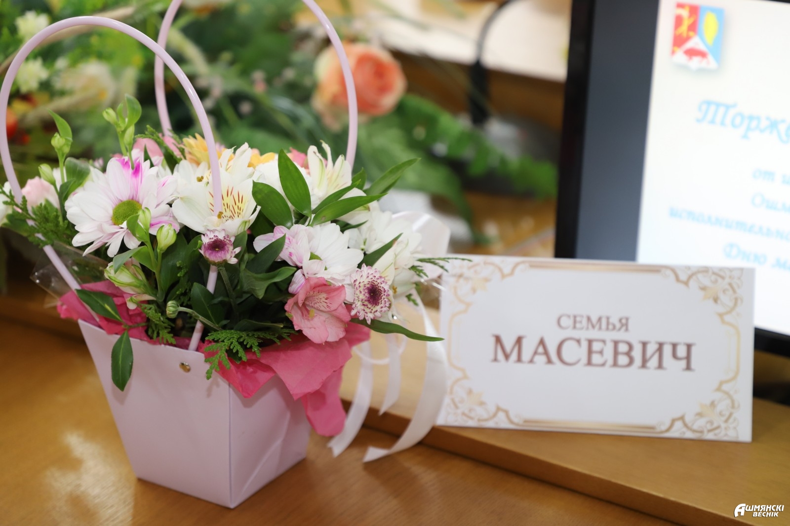В адрес всех присутствующих звучали теплые слова и искренние поздравления. Счастливые родители принимали цветы и подарки от районного исполнительного комитета и райкома профсоюза работников агропромышленного комплекса, а также трогательный знак внимания от детей – сделанные своими руками открытки.