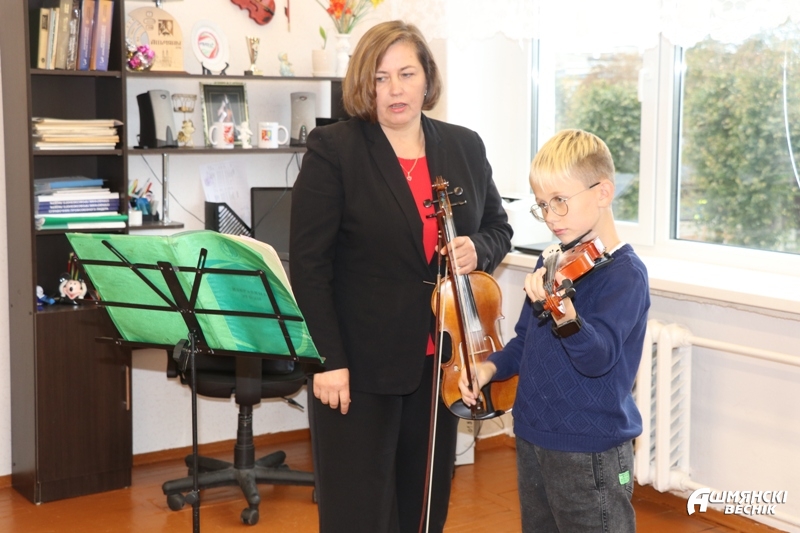 Интервью с Татьяной Черской началось прямо на уроке музыки в Ошмянской детской школе искусств. Ученик третьего класса Никита Бумбуль под руководством Татьяны Викторовны осваивал новое произведение – «Хор охотников» из оперы Вебера «Волшебный стрелок». Разбор сложных тактов, повторение, работа над техникой, игра в дуэте с учителем и под аккомпанемент – и отрывок произведения в исполнении юного скрипача начинает звучать все увереннее.
