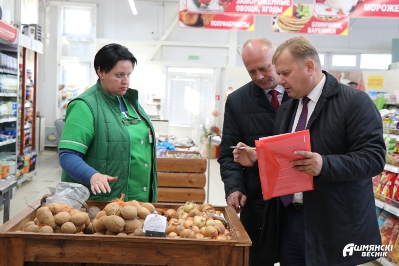Депутат Палаты представителей Национального собрания Виталий Раковец в рамках своей деятельности регулярно посещает торговые объекты своего избирательного округа с целью проведения мониторинга цен на социально значимые товары, а также интересуется ассортиментом представленных в них товаров. Очередной визит вместе со своим помощником, депутатом районного Совета депутатов Анатолием Щастным он совершил в магазин Ошмянского филиала областного потребительского общества «Родны кут», расположенный по ул. Красноармейской в микрорайоне Западном.