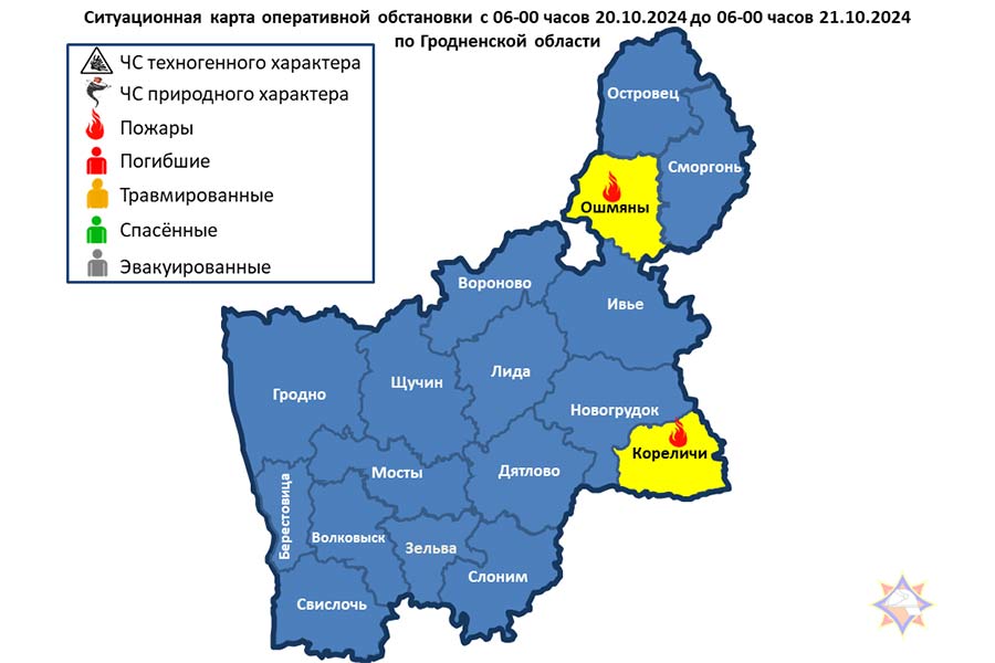 Ошмянский район – пожар в жилом доме, Кореличский район – пожар хозяйственной постройки.