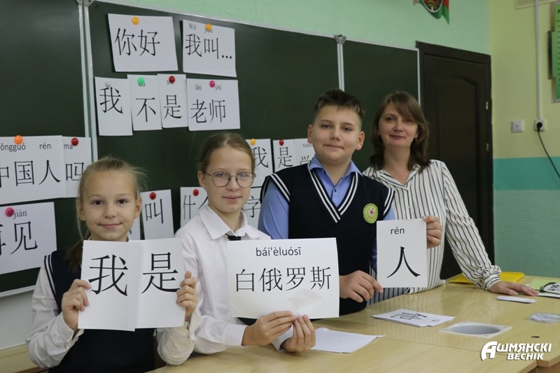 В СШ №3 г. Ошмяны с нынешнего учебного года открыт факультатив китайского языка для второго, пятого, шестого и седьмого классов. На занятиях ребята осваивают грамоту Поднебесной, знакомятся с традициями и культурой восточного государства. Процесс изучения языка нельзя назвать простым – китайская система письма значительно отличается, ведь иероглифы могут означать не только отдельные звуки и слоги, но еще и целые слова или понятия. Добиться внимания школьников на занятиях можно только благодаря использованию интерактивных методов обучения, наглядности. Елена Юрьевна Мисуно, учитель английского языка, прошла переподготовку в БГУ. Два года она активно изучала китайский язык и культуру. Занятия проходили в различных формах – дистанционно и аудиторно. В июне нынешнего года учительница получила заветный диплом и стала единственным специалистом в нашем районе, имеющим право преподавать китайский язык.