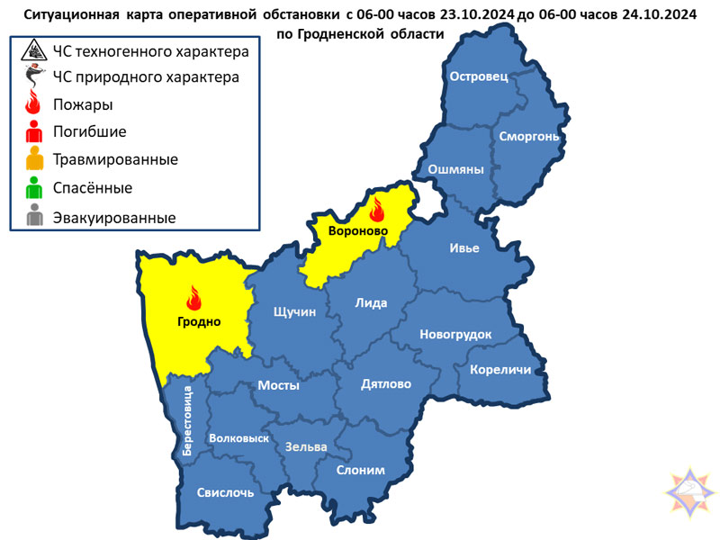 За прошедшие сутки на территории Гродненской области произошло 2 пожара: в Вороновском районе – пожар частного вагона-бытовки, в г. Гродно – пожар в квартире. Люди не пострадали.