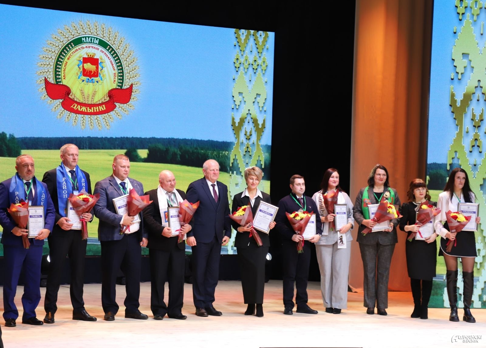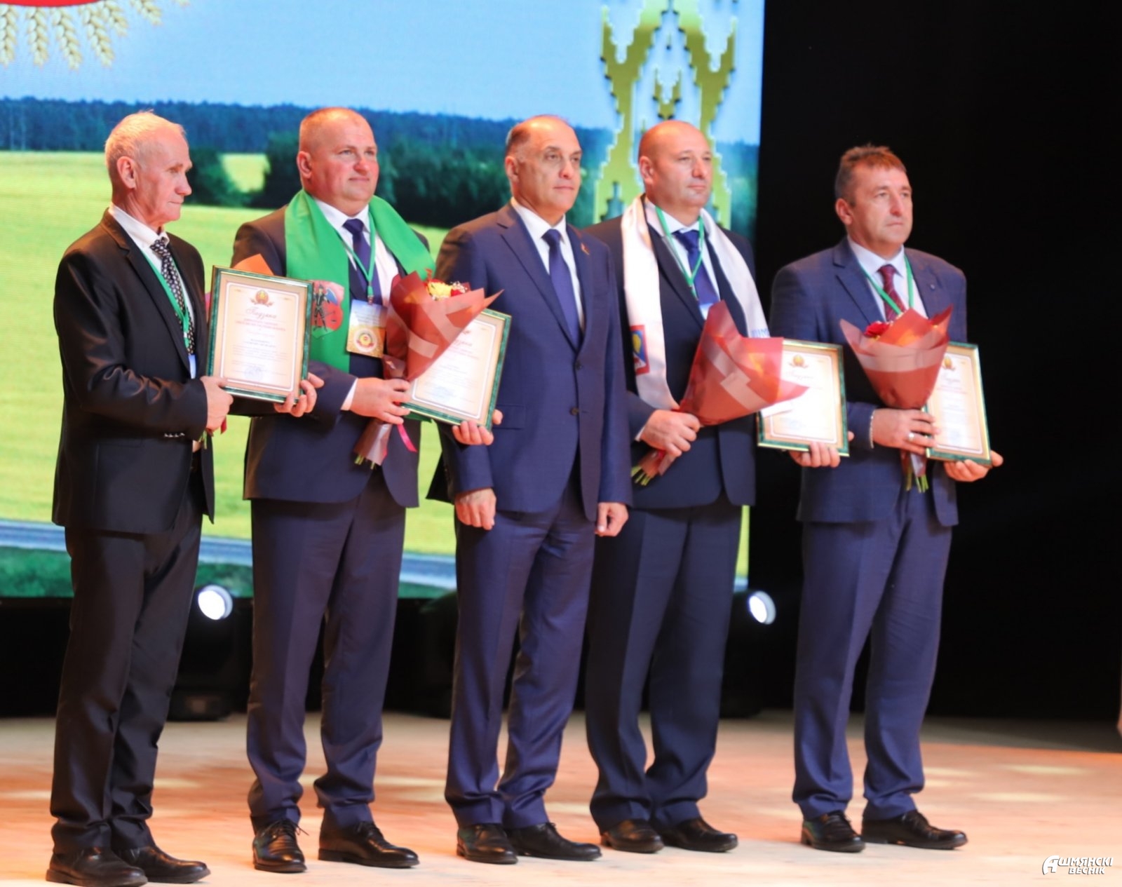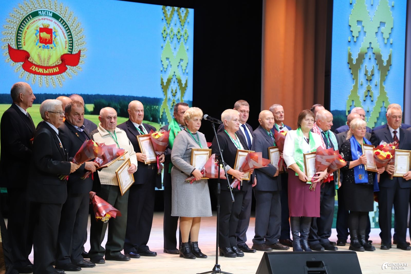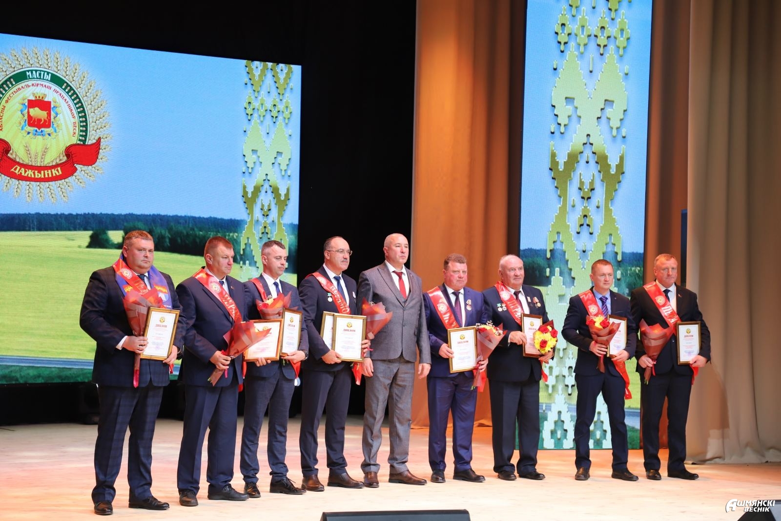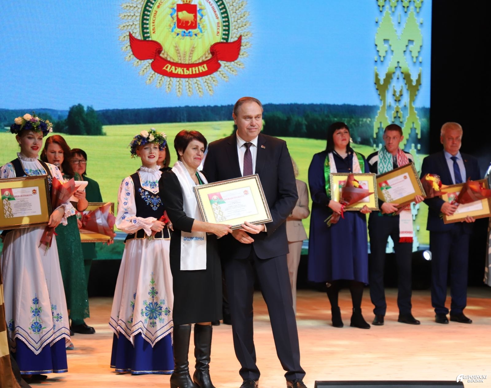 В этот праздничный день аграрии принимали заслуженные награды. Глава области поблагодарил все районы за эффективную работу и решение поставленных задач. На «урожайный пьедестал» в этот день поднимались комбайнеры, водители, руководители сельхозпредприятий – все те, кто внес личный вклад в общий каравай. Среди них – представители Ошмянщины. Благодарность Государственного секретаря Совета Безопасности Республики Беларусь объявлена старшине группы материально-технического обеспечения и строительства РОЧС Ивану Жуковскому, Почетной грамотой областного исполнительного комитета награждена оператор машинного доения КСУП «Гольшаны» Галина Кузьмицкая. В число победителей областного соревнования за достижение высоких показателей в производстве животноводческой продукции среди сельскохозяйственных организаций, имеющих свиноводческую отрасль, вошло КСУП «Гольшаны», занявшее второе место. Победителем областного соревнования за достижение высоких показателей в производстве животноводческой продукции среди операторов по обслуживанию свиноматок с поросятами стала Галина Версоцкая, которая трудится на свинокомплексе «Воловики» КСУП «Гольшаны». Труд ветврача районной ветстанции Владимира Буйко отмечен Грамотой Гродненского областного комитета Белорусского профсоюза работников АПК.