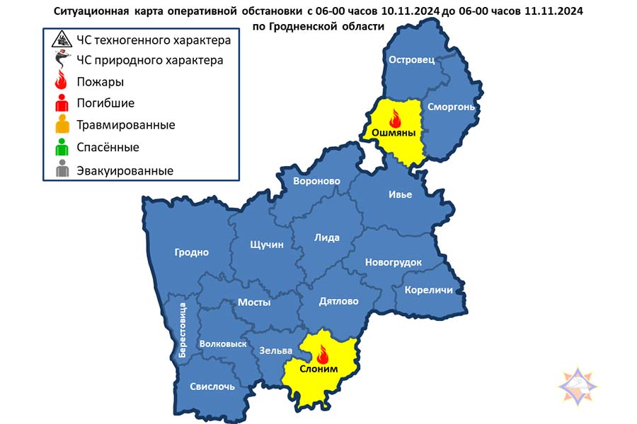 Слонимский район — пожар нежилого дома, Ошмянский район — пожар частной бани. Люди не пострадали.