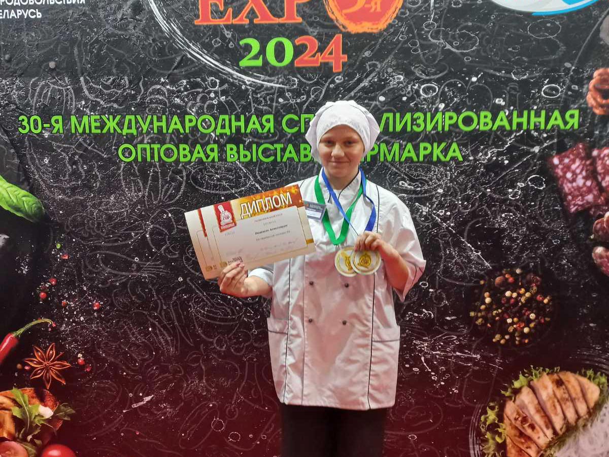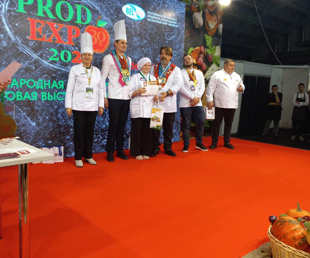 Учащаяся Ошмянского государственного аграрно-экономического колледжа Александра Рацкевич под руководством мастера производственного обучения Ольги Щуки завоевала в Международном кулинарном кубке серебро в номинации «Закуски» и бронзу в номинации «Национальный стол».