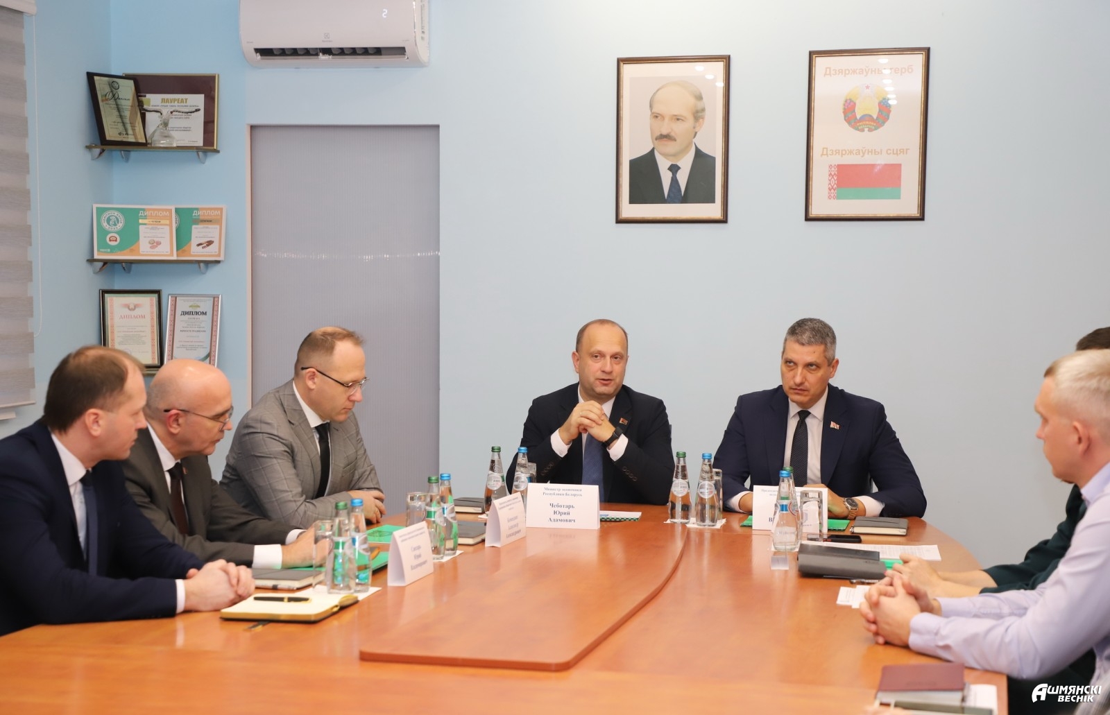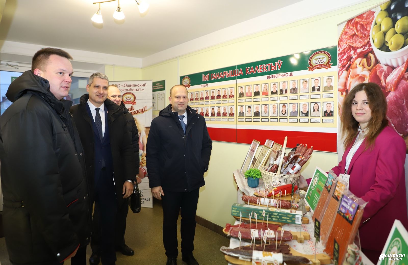 Министр экономики Республики Беларусь Юрий Чеботарь во главе республиканской информационно-пропагандистской группы посетил ОАО «Ошмянский мясокомбинат». Участие во встрече с коллективом предприятия приняли также председатель Ошмянского райисполкома Владислав Гершгорин, председатель комитета экономики Гродненского облисполкома Александр Комендант, заместитель председателя Ошмянского райисполкома Юрий Снесарь.