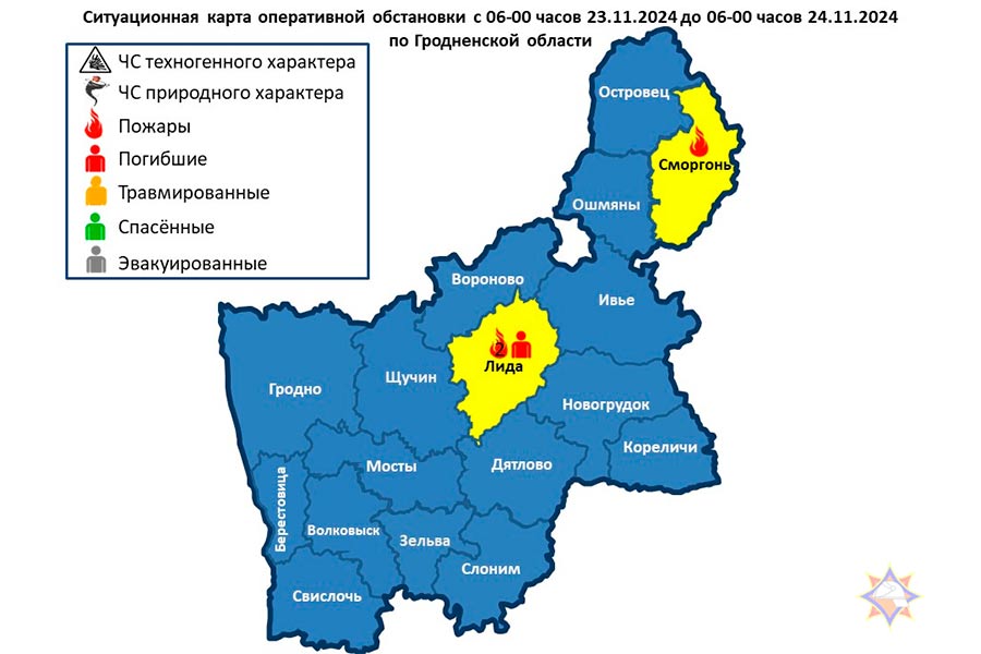 За прошедшие сутки на территории Гродненской области произошло 3 пожара, на которых погиб 1 человек: в Сморгонском районе – пожар хозяйственной постройки, в Лиде – пожар жилого дома, в Лидском районе – пожар в квартире с погибшим.