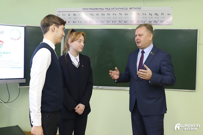 Первоначально парламентарий посетил Борунскую среднюю школу, где принял участие в диалоговой площадке «Молодость – время выбора». В качестве гостя была приглашена и Юлия Субач, первый секретарь райкома ОО «БРСМ». В ходе диалога собравшиеся порассуждали о значении БРСМ, роли организации в воспитании молодого поколения. После старшеклассники поделились своими успехами, рассказали об участии в трудовых, патриотических и благотворительных акциях. Виталий Николаевич вспомнил о годах своей юности, призвал молодежь не стоять на месте, а стремительно развиваться и достигать своих целей.