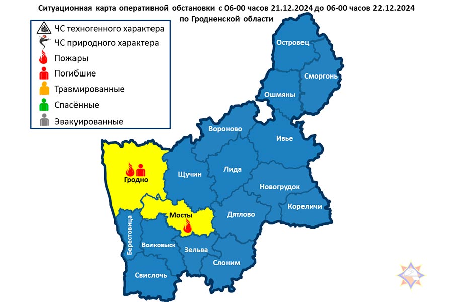 Произошло 2 пожара, погиб 1 человек: в г. Гродно – пожар в теплокамере с гибелью человека, в Мостовском районе – пожар гаража.