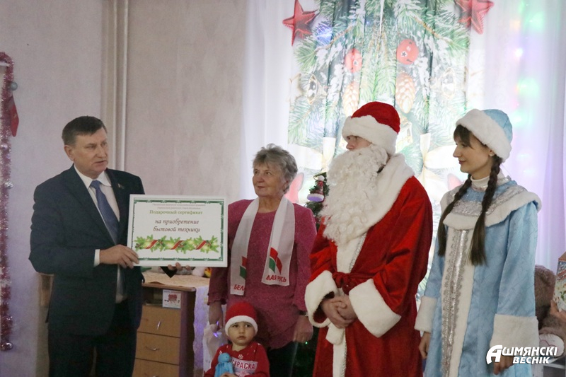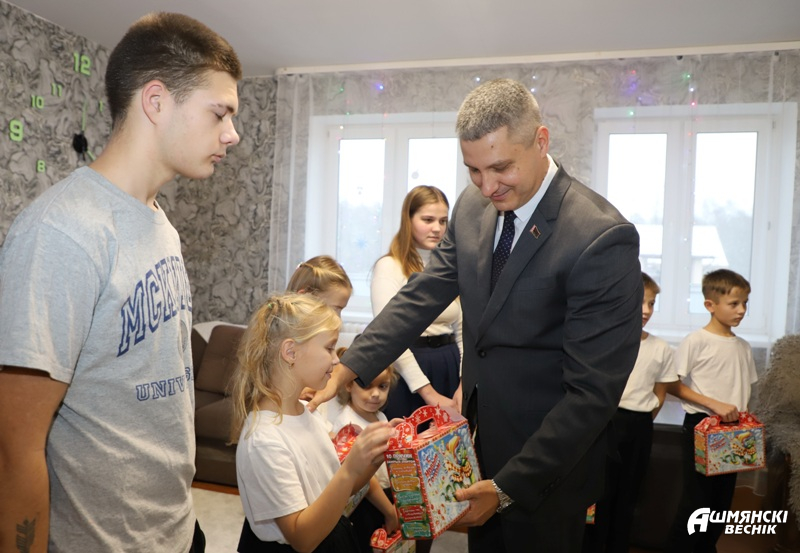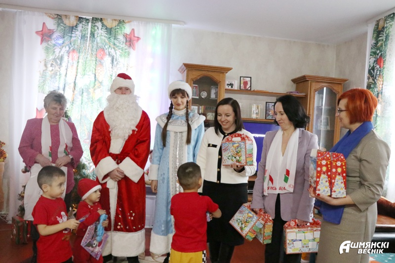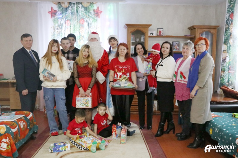 Несколько дней осталось до самых волшебных зимних праздников. В эти дни акция «Наши дети» уверенно шагает по Ошмянщине, собирая все больше неравнодушных сердец. В канун новогодних праздников воспитанники домов семейного типа принимали поздравления от председателя Ошмянского райисполкома Владислава Гершгорина, председателя районного Совета депутатов Юрия Карповича, а также заместителя председателя Ошмянского райисполкома Анны Язель, начальника управления образования Светланы Барковской.