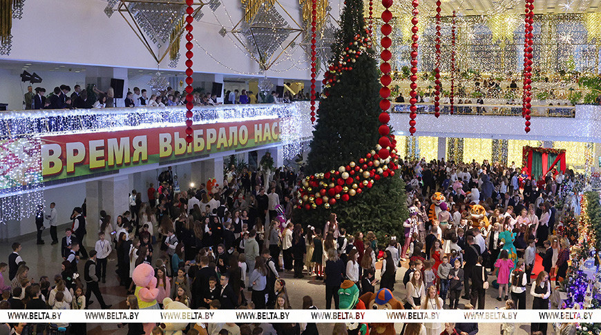 «Дорогие ребята, дорогие наши патриоты, учителя и воспитатели! Это не потому, что предвыборная у нас сейчас «вакханалия». Нет, я искренне так считаю. Я вас поздравляю всех с Новым годом», — сказал глава государства.