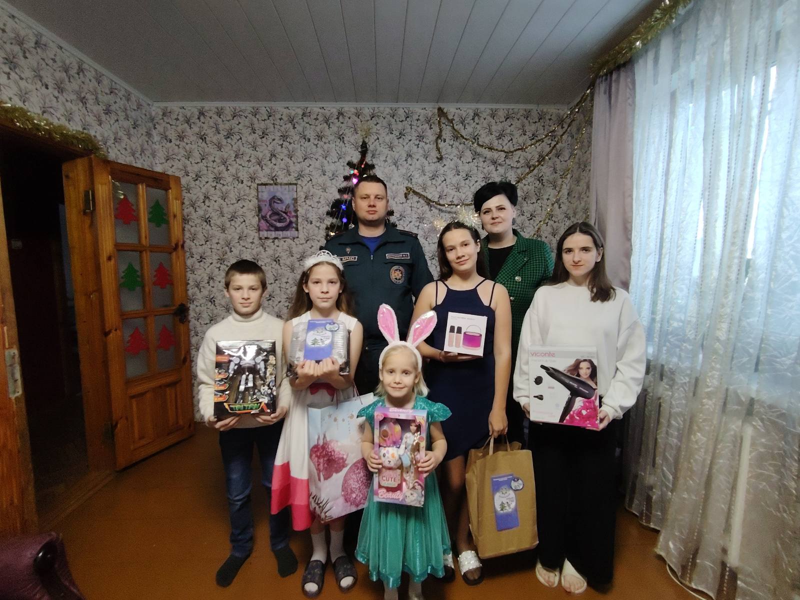 Акция стала традиционной и любимой и в нашем районе. Районный комитет ОО «БРСМ» совместно с Ошмянским РОЧС организовали поздравления для семьи Рябоконь. Первый секретарь райкома ОО «БРСМ» Юлия Субач и старший инспектор РОЧС Михаил Марковский приехали к ребятам не с пустыми руками. Они привезли малышам сладкие угощения, игрушки, а также заряд хорошего настроения и позитива. Ребята читали для гостей стихи, пели новогодние песни и рассказывали об успехах в школе. Михаил Марковский напомнил детям о правилах безопасности и подарил тематические раскраски «Безопасный Новый год».