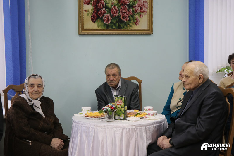 Поздравить людей пожилого возраста приехали председатель Государственного таможенного комитета Владимир Орловский, начальник Гродненской региональной таможни Александр Пихун, директор Гродненского филиала РУП «Белтаможсервис» Наталья Леонова, начальник таможенного поста «Ошмянский» Леонарда Локтева, председатель Гродненской областной организации Белорусского профсоюза работников отраслей промышленности «БЕЛПРОФМАШ» Алеся Цыдик, директор ОАО «Гольшанский крахмальный завод» Сергей Чудиловский.