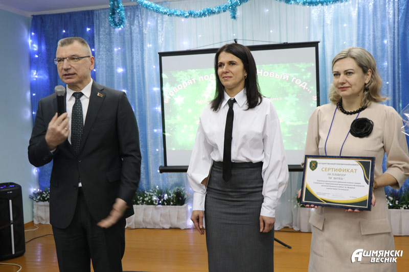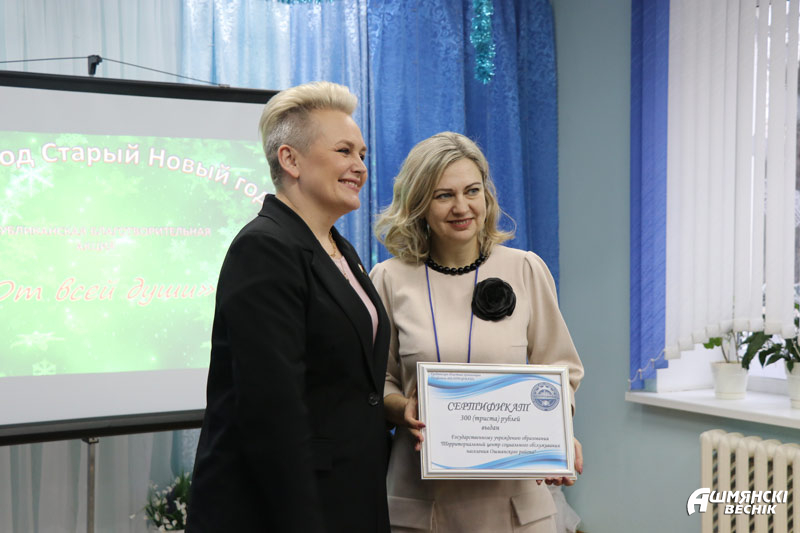 Гости вручили учреждению подарки и подарочные сертификаты, а также продуктовые наборы. В теплой и душевной атмосфере звучали в этот день музыкальные номера от учеников класса Ошмянской детской школы искусств в Жупранах, сотрудников Гродненской региональной таможни Виты Булко и Павла Толочко, работников культуры Ошмянского района Светланы Федорович и Анастасии Станкевич.