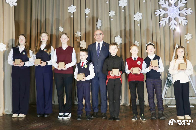 В просторном актовом зале собрались ребята разного возраста. Каждый из них и сегодня сохраняет веру в сказку и новогоднее чудо. Приняли участие в закрытии представители местной власти и общественных объединений. Атмосфера в зрительном зале была особенно душевной и теплой. С приветственным словом к собравшимся обратился Юрий Снесарь, заместитель председателя райисполкома. Он подвел итоги марафона добра, а ребятам пожелал не терять веру в чудо на протяжении целого года. Кроме того, Юрий Владимирович отметил творческую активность ребят – многие из них приняли участие в конкурсе детского рисунка «Бизнес глазами детей». Творческое соревнование проводилось в разных номинациях и для разных возрастных групп. Учащиеся школ Ошмянского района проявили свой художественный талант, умение передавать основные идеи и стали победителями в трех номинациях. Из рук заместителя председателя райисполкома они получали заслуженные награды.