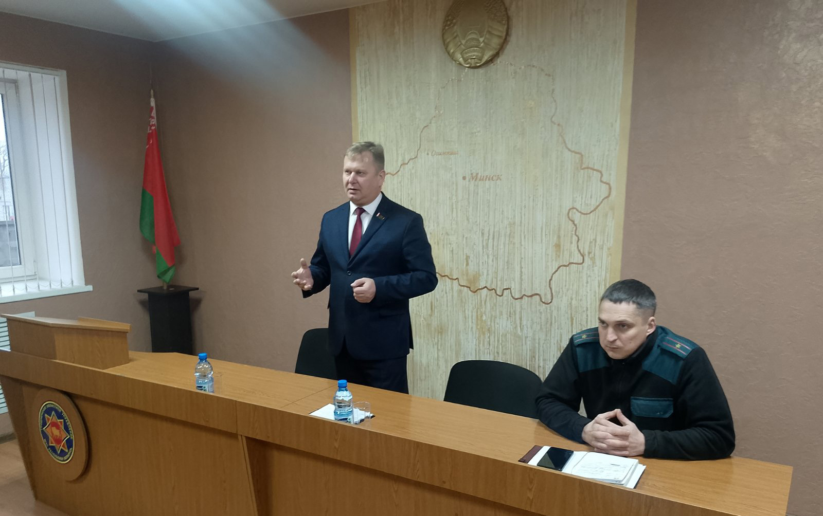 Возможность постоянных встреч в трудовых коллективах своего избирательного округа – важный элемент депутатской работы. В преддверии выборов Президента Республики Беларусь депутат Палаты Представителей Национального собрания Виталий Раковец вместе с первым заместителем председателя райисполкома Андреем Янюком, заместителем председателя райисполкома Анной Язель и помощником депутата Анатолием Щастным пообщались с коллективами РОЧС, РОВД и районной газеты.