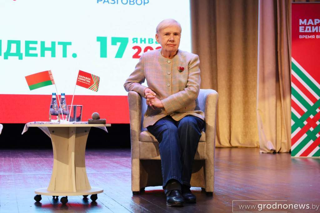 В рамках «Марафона единства» в Гродно прошла традиционная встреча под названием «Моя жизнь. Мой путь. Мой Президент». Главным спикером выступила одна из самых ярких фигур белорусской политической сцены – Лидия Михайловна Ермошина, заслуженный юрист Беларуси, председатель Центральной избирательной комиссии Беларуси в 1996-2021 годах. Мероприятие прошло в стенах ГрГУ имени Янки Купалы. Встреча собрала студентов вуза и представителей общественности.
