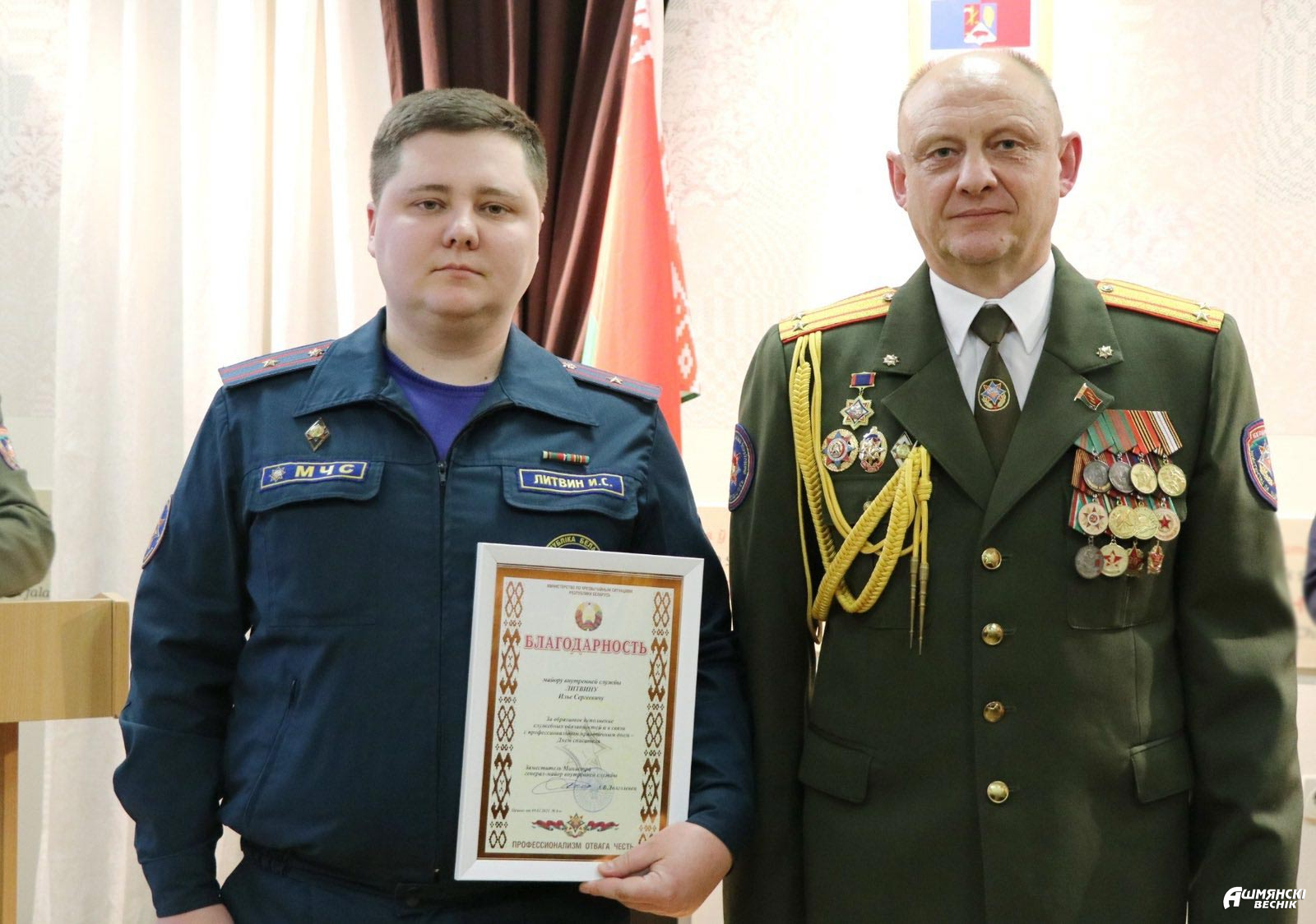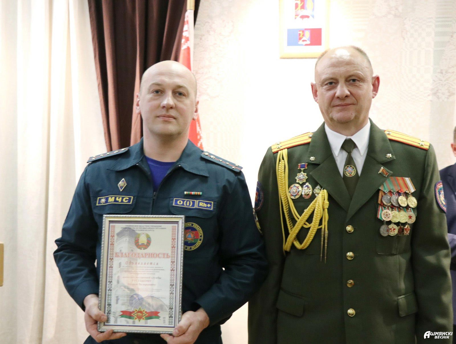 За содействие Следственному комитету Республики Беларусь Благодарность председателя комитета объявлена заместителю начальника Ошмянского РОЧС Сергею Рагинскому.