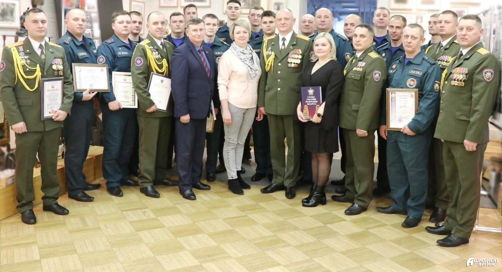 Почетной грамотой Ошмянского районного исполнительного комитета награждены начальник пожарного аварийно-спасательного поста № 11 Александр Лугин и водитель ПАСЧ № 1 Виталий Ковшик. Благодарственным письмом председателя Ошмянского райисполкома отмечен добросовестный труд начальника ПАСЧ № 1 Павла Лайбиса и водителя ПАСЧ № 1 Юрия Бражицкого.