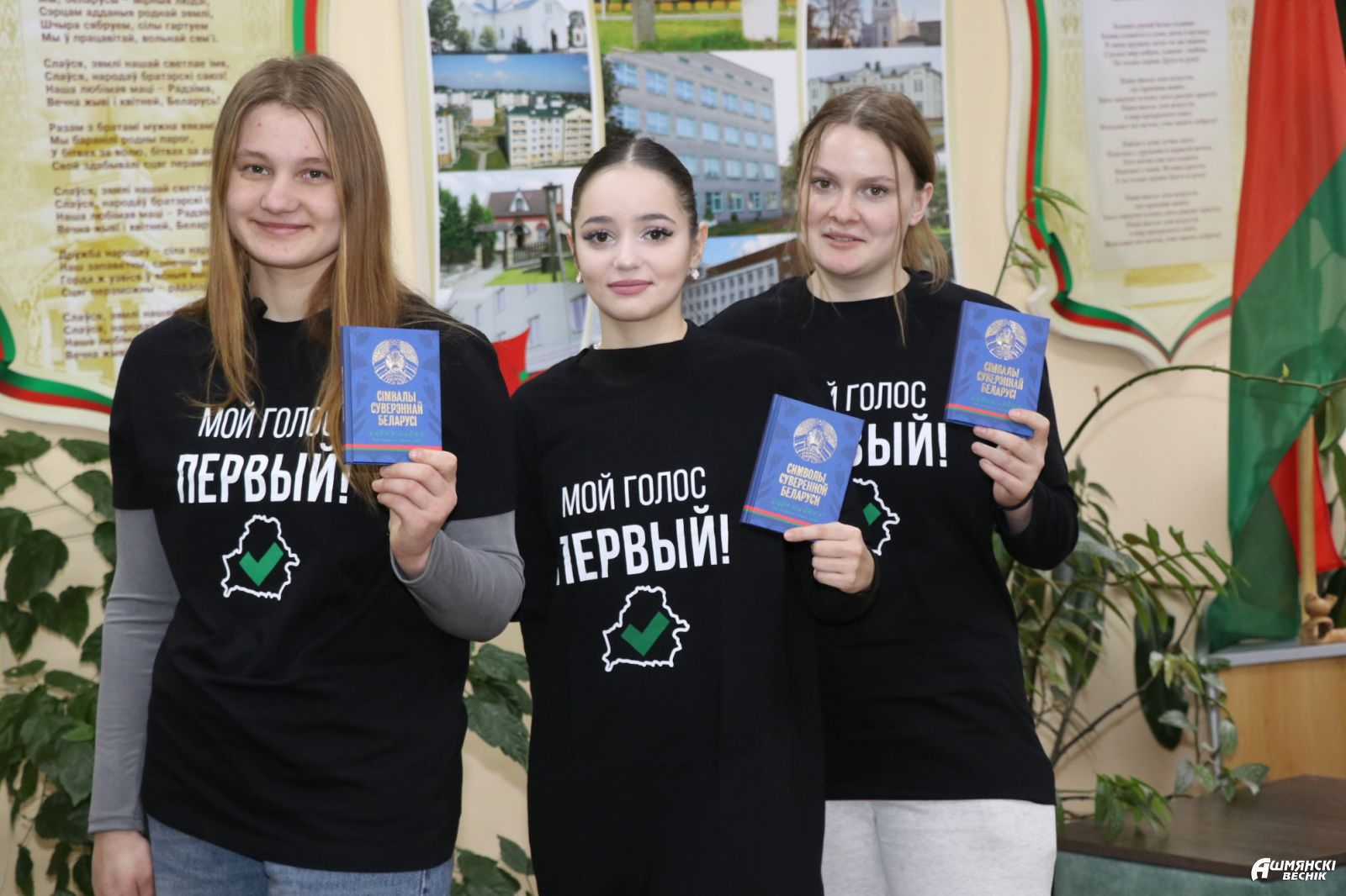 В нынешнюю электоральную кампанию в Ошмянском районе 255 человек проголосуют впервые. На Советском участке для голосования к этому событию подготовились заранее – в подарок ребятам приготовили книгу «Символы суверенной Беларуси», в которой представлено 23 символа. Кроме того, ОО «БРСМ» в рамках проекта «Твой голос первый» вручил молодым избирателям футболки, которые станут добрым напоминанием о важном событии в их жизни.