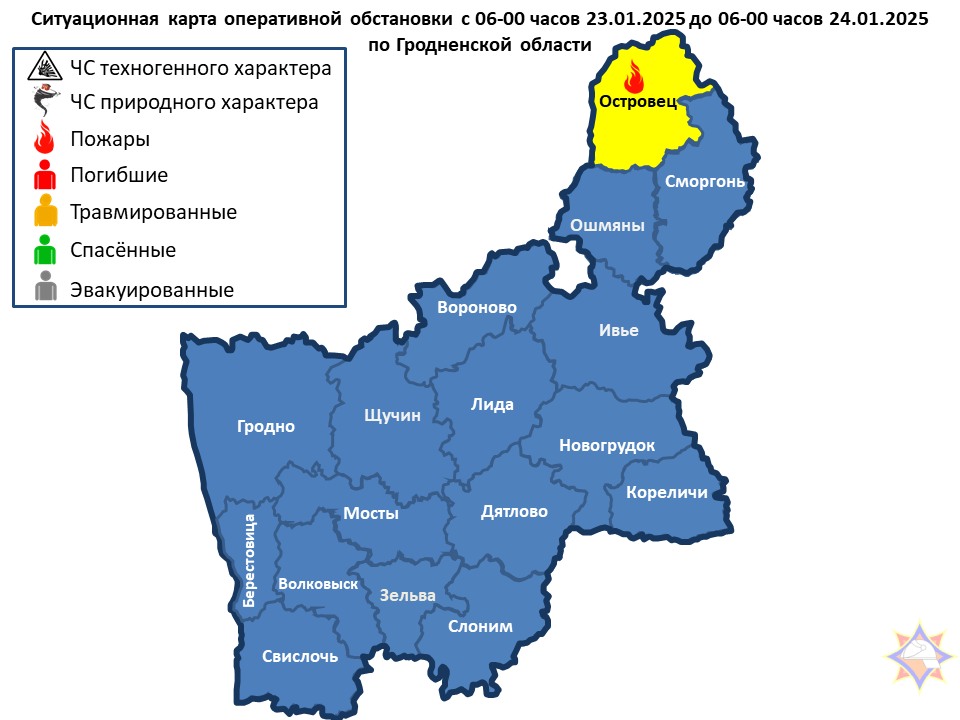 За прошедшие сутки на территории Гродненской области произошел 1 пожар: в Островецком районе – пожар жилого дома. Люди не пострадали.
