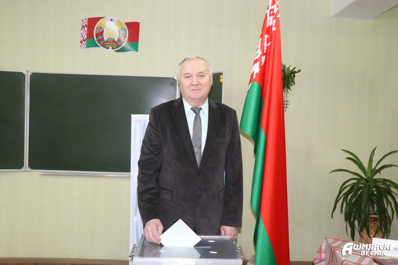 Виктор Скаскевич, директор филиала «Автомобильный парк № 13 г. Ошмяны» открытого акционерного общества «Гроднооблавтотранс», почетный гражданин Ошмянского района, голосует на Строительном участке для голосования № 17: