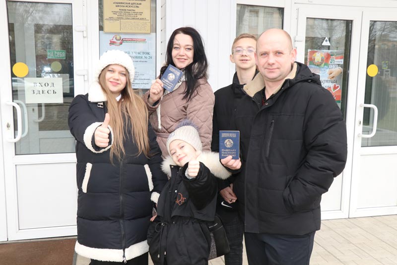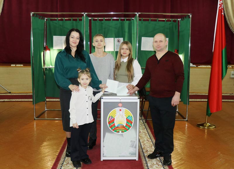 Многодетная семья Пашкевич из Ошмян пришла на участок для голосования в полном составе: глава семьи — механизатор ООО «КольчуныАгро» Андрей Эдуардович, мама — специалист по социальной работе ТЦСОН Вероника Александровна, Кирилл — учащийся Минского автомеханического колледжа, учащаяся 7 класса СШ № 2 Ксения и первоклассница гимназии № 1 Полина.