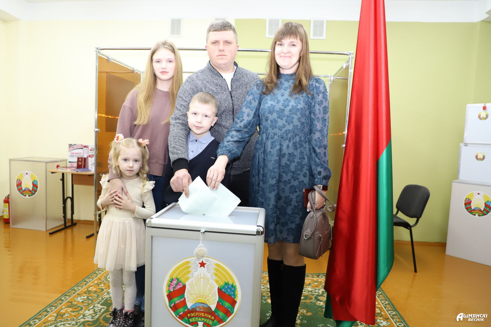 Одной из первых проголосовала семья Ольги и Александра Лапшевич.