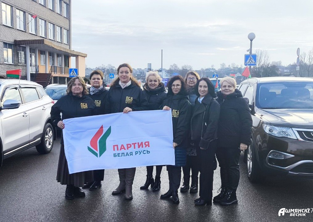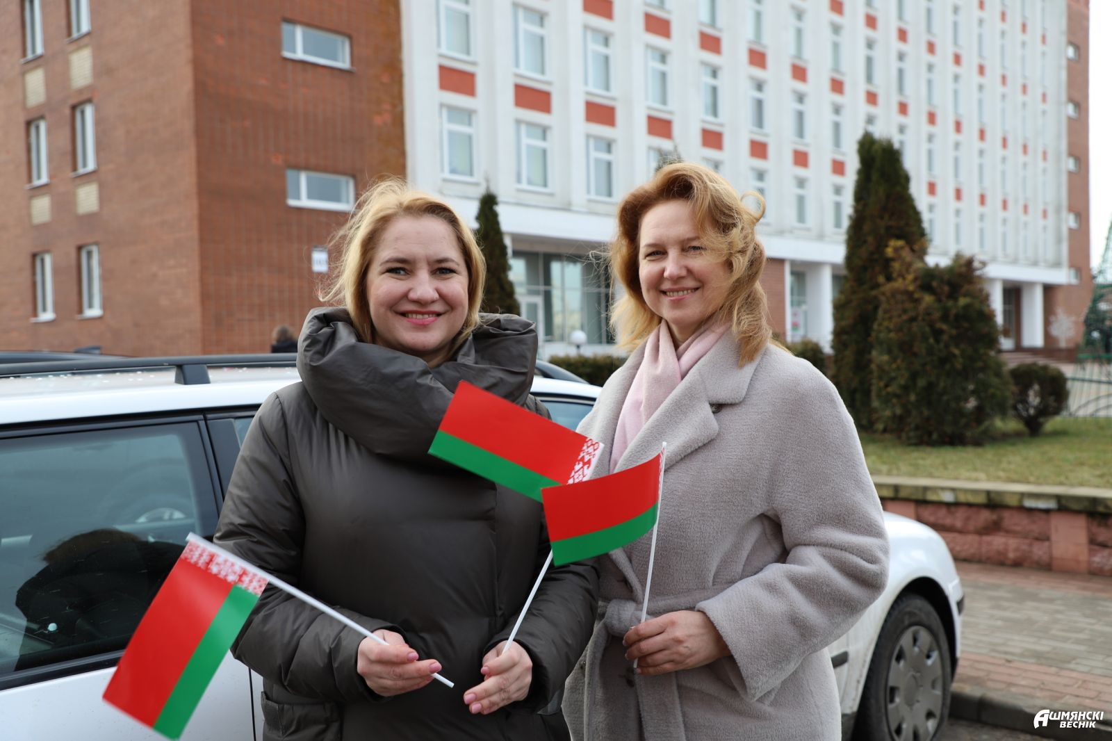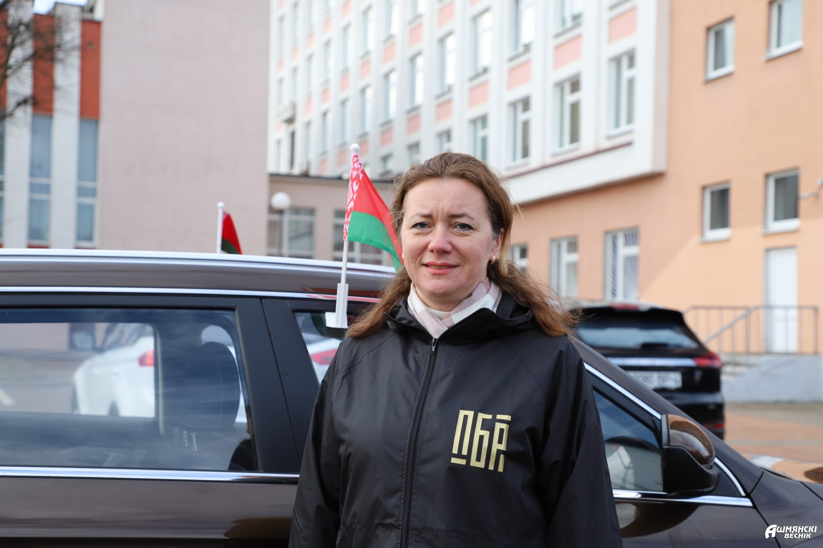 Среди участников автопробега — председатель совета районного отделения Белорусской партии «Белая Русь» Светлана Барковская: