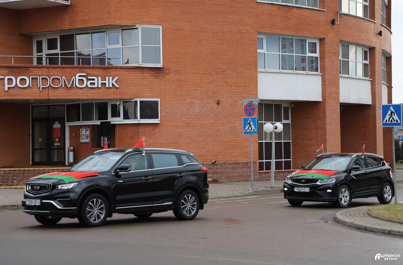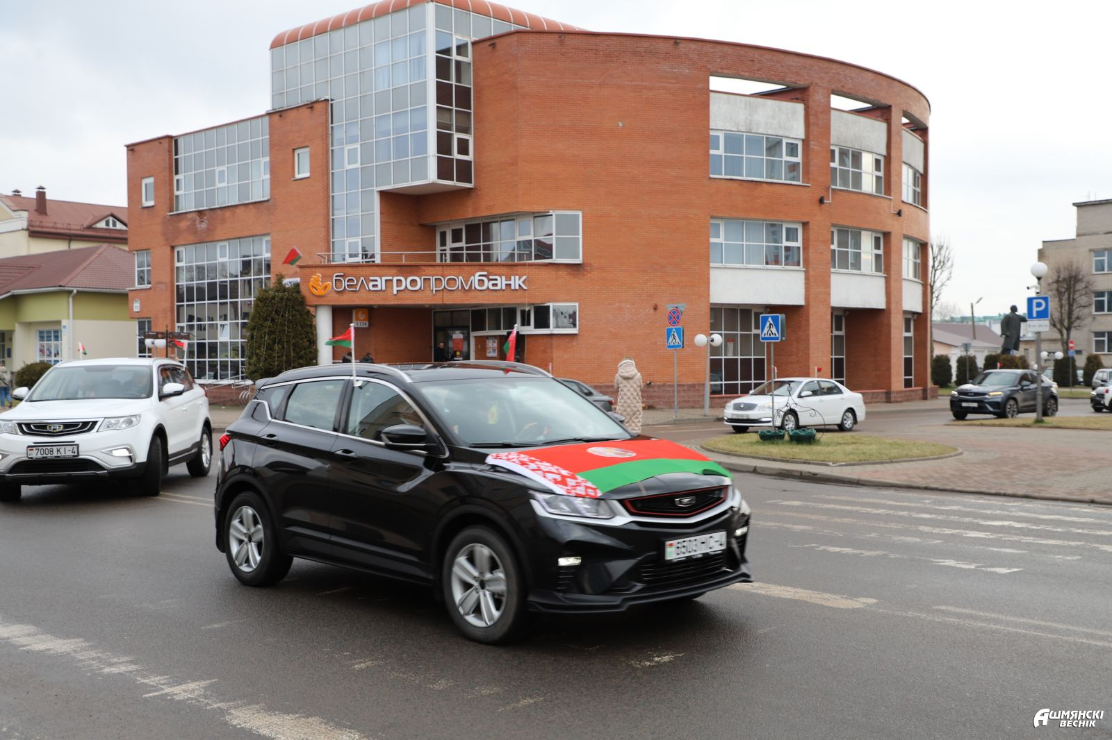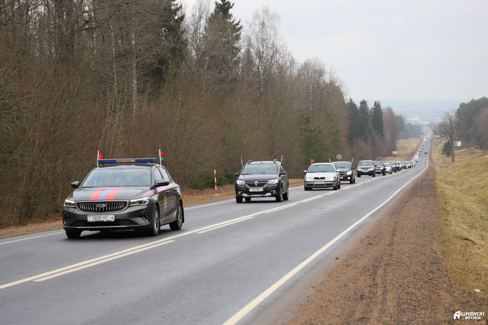 В поддержку результатов выборов колонна из 87 автомобилей с государственными флагами проехала по маршруту Ошмяны – Гольшаны – Боруны – Каменный Лог – Ошмяны, охватив тем самым практически весь район.