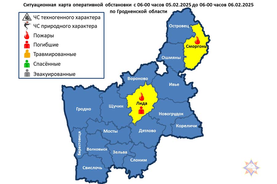 За прошедшие сутки на территории Гродненской области произошло 2 пожара, погиб 1 человек: в Лидском районе – пожар жилого дома с гибелью человека, в Сморгонском районе – пожар легкового автомобиля.