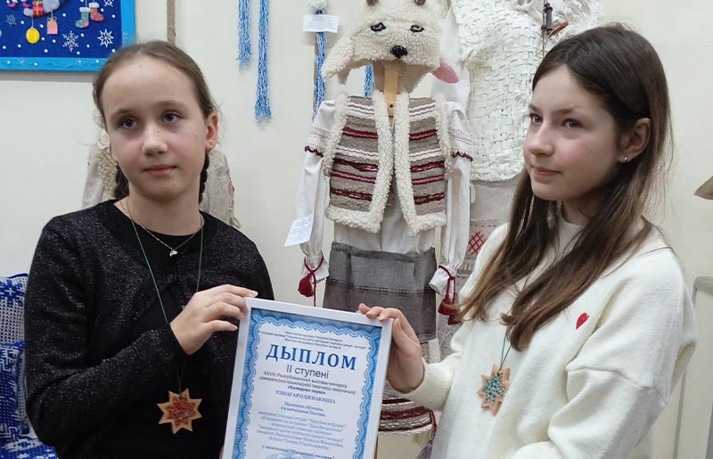 Наведвальніцы ўзорнай студыі “Чароўны куфэрак” аб’яднання па інтарэсах “Дызайн адзення” Яўгенія Палсцюк і Паліна Селятыцкая атрымалі дыплом другой ступені ў намінацыі “Навагодні касцюм”. Сваю задуму – касцюм Казы – дзяўчынкі ажыццявілі пад кіраўніцтвам педагогаў Наталлі Вайцяхоўскай і Тамары Кетрыс.