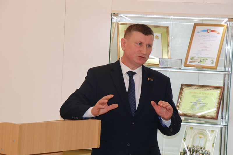 Председатель Ошмянского районного Совета депутатов Юрий Карпович, обращаясь к молодежи, подчеркнул, что именно молодым предстоит приумножать те достижения, которых достигли предшествующие поколения. Именно молодежи предстоит строить будущее, опираясь на крепкий фундамент – нашу историю, память о подвиге в годы военных испытаний, национальные традиции. Все это важно сберечь и донести до будущих поколений. Юрий Михайлович отметил, что молодежь должна стать активной участницей новых преобразований, не оставаться в стороне от принятия важных для страны решений, принимая активное участие в работе молодежных формирований, в том числе — и молодежного парламента, действующего при районном Совете депутатов.
