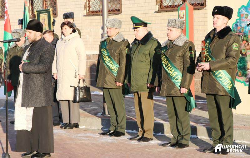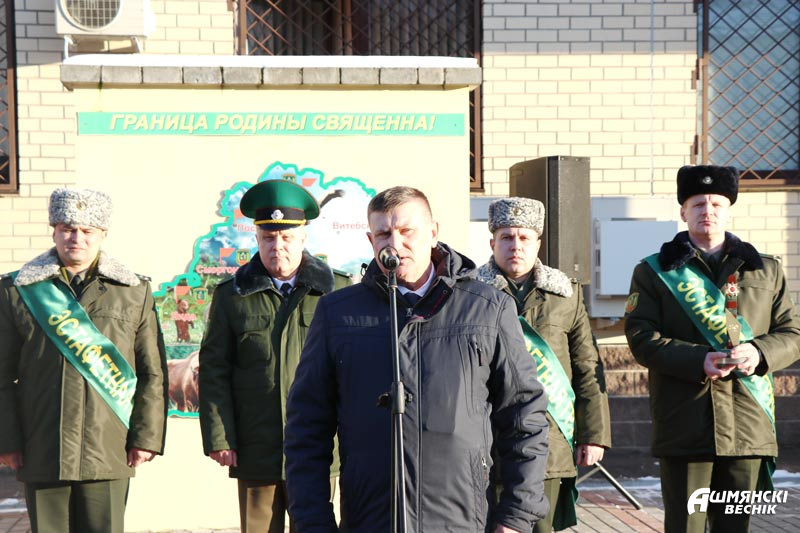 Торжественный митинг, посвященный этому значимому событию, прошел на плацу пограничной заставы «Каменный Лог». В мероприятии приняли участие председатель Ошмянского районного Совета депутатов Юрий Карпович, председатель Каменнологского сельисполкома Ольга Синкевич, настоятель храма Воскресения Христова г. Ошмяны протоиерей Георгий Муха, военнослужащие пограничной заставы «Каменный Лог», а также воспитанники клуба «Юный друг пограничников» Цуденишской средней школы.