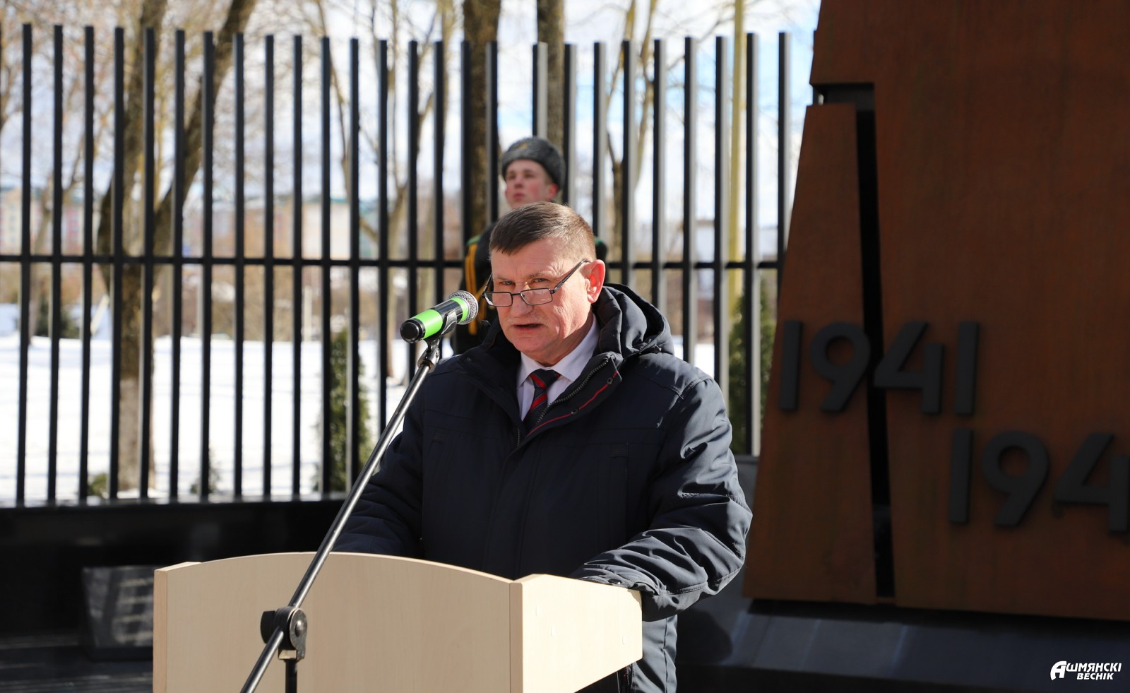 — Уже почти восемь десятилетий великий подвиг народа-воина, народа-труженика является неиссякаемым источником духовной силы для потомков. Он придает особый смысл всей нашей современной истории, формирует гражданскую позицию поколений, родившихся в послевоенное время. Этот день объединяет всех единой исторической памятью. Наш долг – помнить об этом, и эту память передавать молодому поколению, чтобы они стали настоящими патриотами своей земли, чтили страницы ее великой и славной истории, — обратился к присутствующим председатель Ошмянского районного Совета депутатов Юрий Карпович.