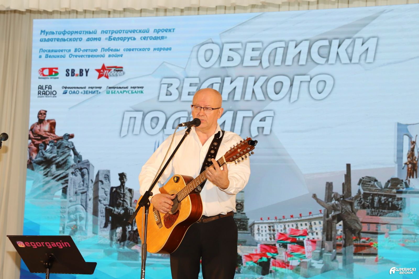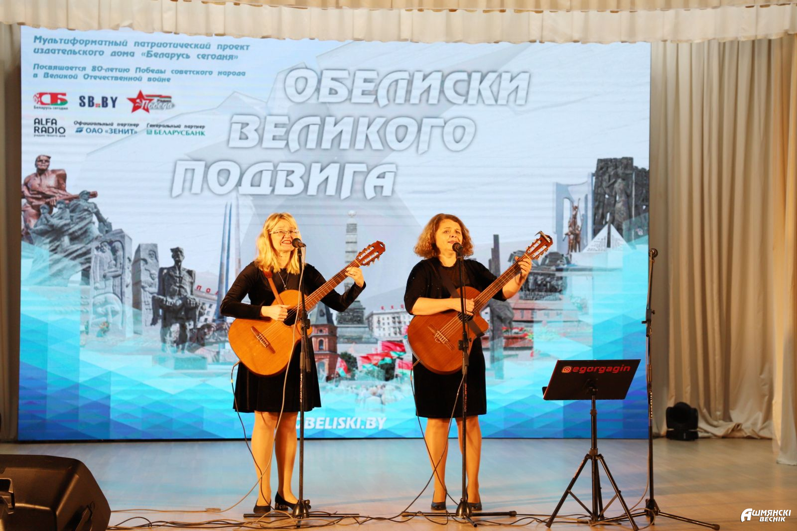Ярким аккордом торжества стал концерт бардовской песни «Надежды маленький оркестрик» ансамбля «Песни нашего круга». Такой подарок ошмянцам преподнесли организаторы выставки «Обелиски великого подвига», презентованной издательским домом «Беларусь сегодня». В исполнении артистов звучали как популярные композиции, так и авторские песни, посвященные героизму советского народа в Великой Отечественной войне.