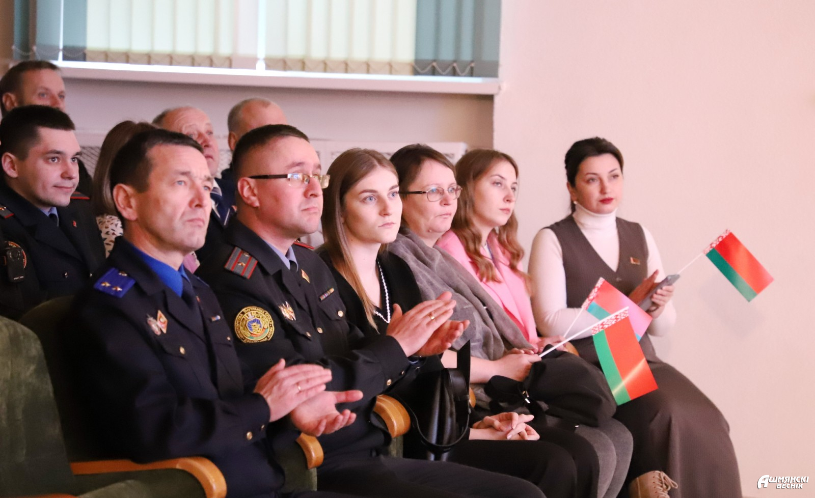 К словам поздравлений присоединился военный комиссар военного комиссариата Ошмянского района подполковник Игорь Мисюкевич, вручивший юбилейные медали «80 год вызвалення Беларусі ад нямецка-фашысцкіх захопнікаў” начальнику Ошмянского отдела Департамента охраны МВД Республики Беларусь Денису Богдевичу и начальнику Ошмянского районного отдела Следственного комитета Республики Беларусь Денису Васильеву.
