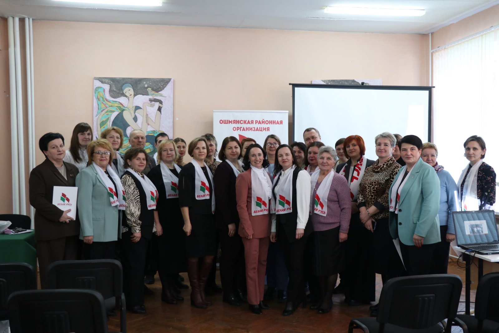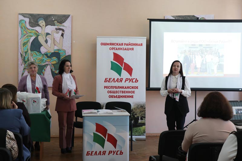 На базе Ошмянской детской школы искусств прошло заседание Совета Ошмянской районной организации РОО «Белая Русь», участие в котором приняли заместитель председателя Ошмянского райисполкома, председатель районной организации РОО «Белая Русь» Анна Язель, председатели и члены первичных организаций. Мероприятие традиционно началось с исполнения Государственного гимна Республики Беларусь.