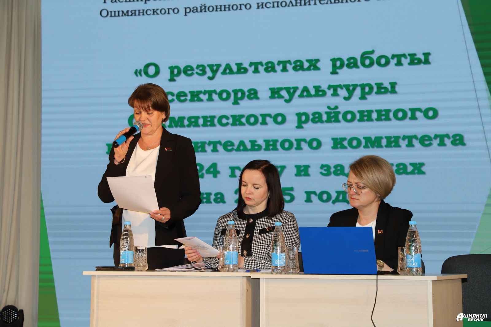 О результатах работы учреждений сферы культуры и задачах на перспективу доложила заведующий сектором культуры Ошмянского райисполкома Ольга Борисенко-Рабко. Она дала оценку деятельности районного центра культуры, клубных учреждений, библиотек, музея, школ искусств.