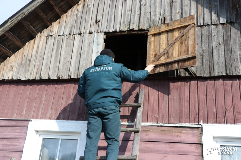 Чтобы убедиться в безопасности домовладения 94-летнего жителя агрогородка, Михаил Марковский заглянул и на чердак – посмотреть, побелен ли в доме дымоход. Именно побелка позволяет определить трещины, тем самым предупредить в дальнейшем возможное возгорание.