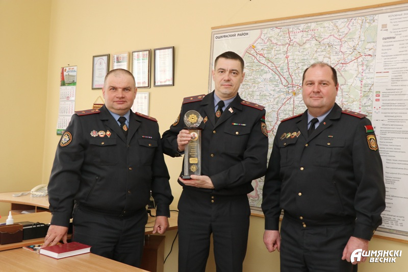 Увесистый хрустальный приз имени Федора Гудея, который был вручен командиру подразделения Андрею Кирковскому на итоговой коллегии силового ведомства Гродненской области, — это итог ежедневной нелегкой службы всего коллектива ошмянских стражей дорог: опытных сотрудников, знающих ответ на все вопросы по безопасности дорожного движения, — старшего инспектора по административной практике Виталия Шумского, старшего инспектора ДПС Александра Яцуковича, старшего госавтоинспектора Александра Каморника; молодых и целеустремленных инспекторов ДПС Александра Красовского, Алексея Карполенко, Дениса Михневича, Алексея Щёлко, Александра Аленцевича и Ярослава Завадского.