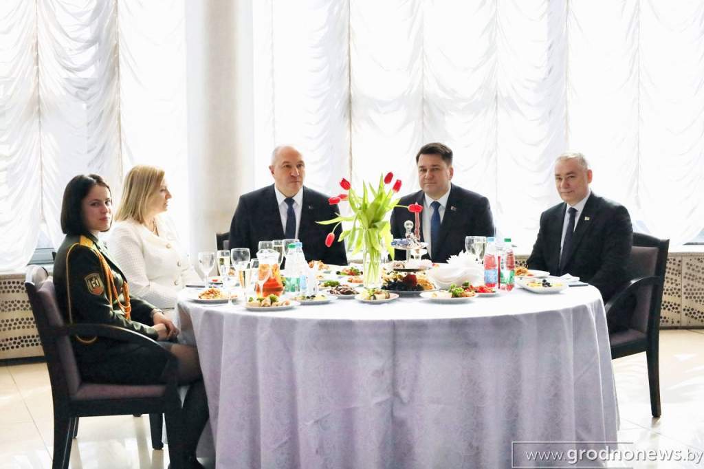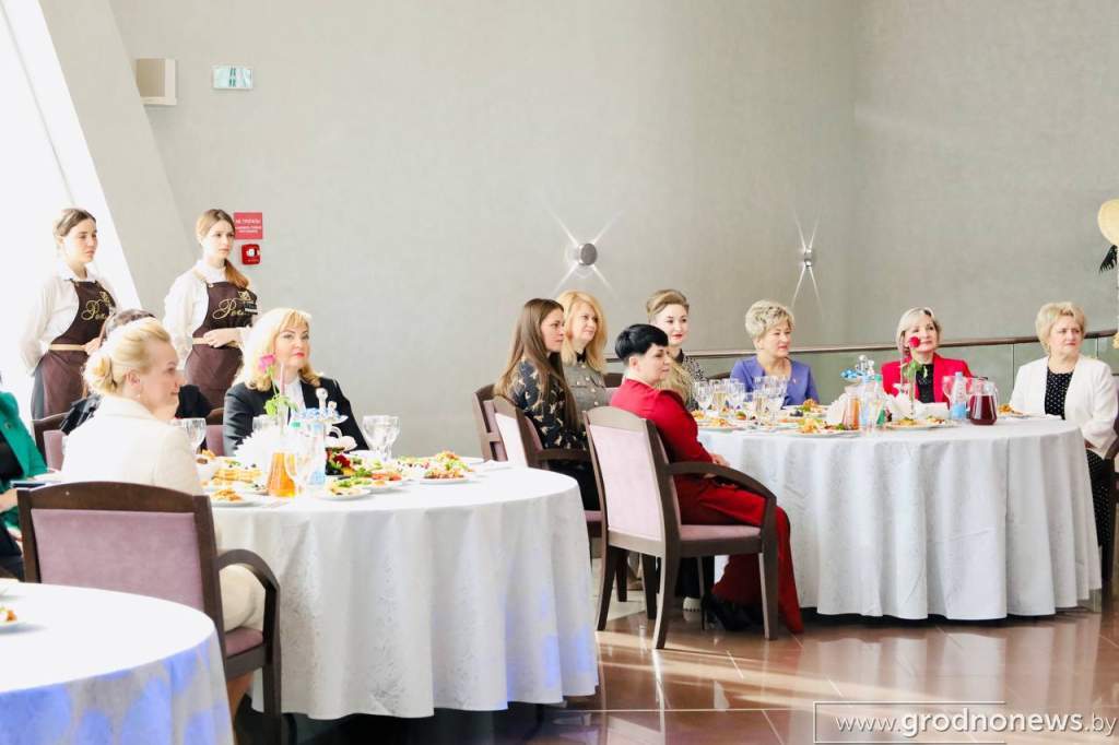В этот теплый весенний день женщины принимали поздравления от исполняющего обязанности председателя облисполкома Юрия Караева, председателя областного Совета депутатов Елены Пасюты, заместителя председателя облисполкома Виктора Пранюка, начальника главного управления идеологической работы и по делам молодежи Игоря Булавко, председателя Гродненской областной организации ОО «Белорусский союз женщин» Ирины Степаненко.