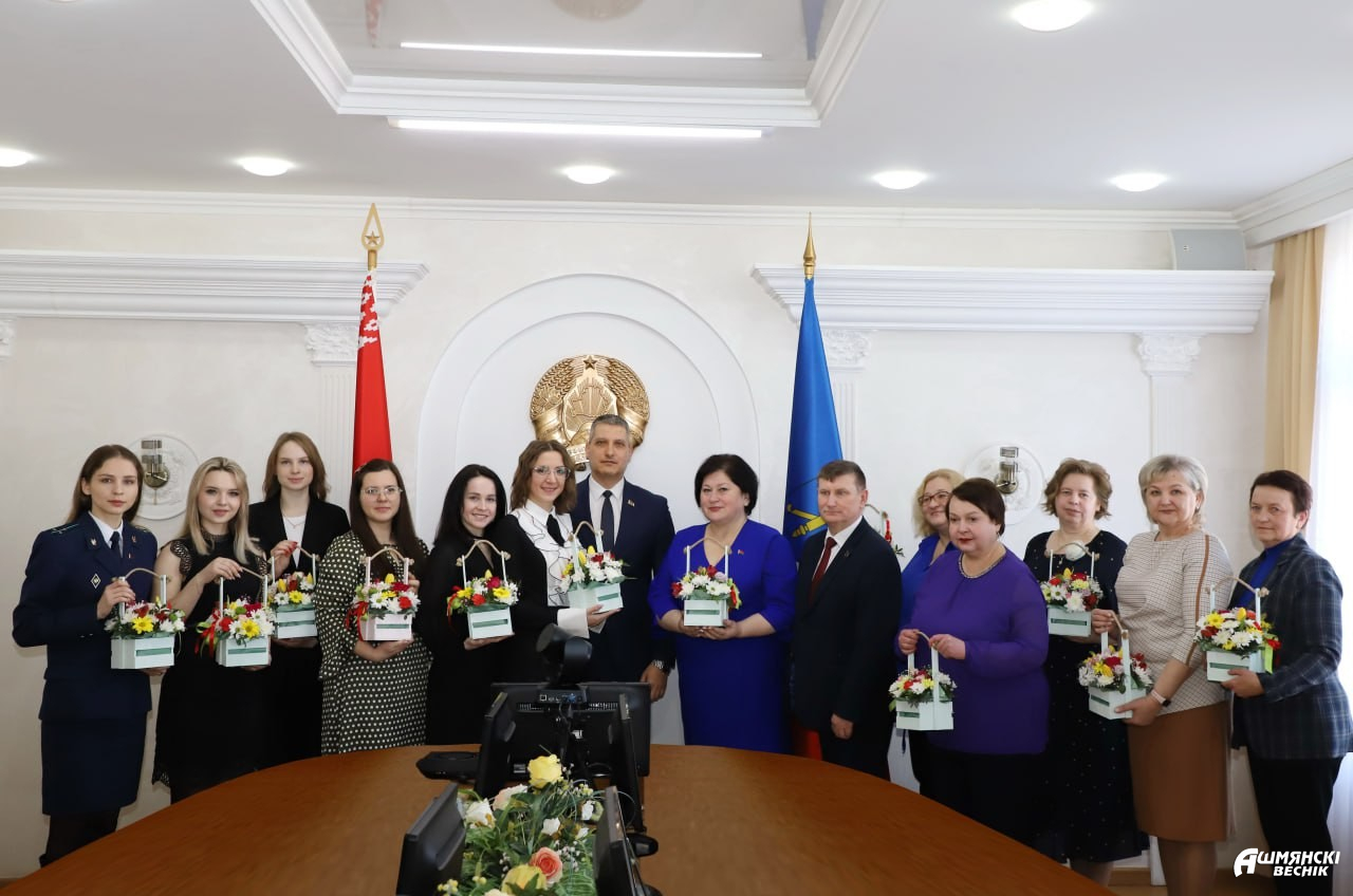Трогательные, душевные поздравления, цветы и подарки принимали в этот день учитель средней школы №3 Сабина Боярович, посвятившая более 40 лет работе в банковской системе Ирена Бальцевич, ветеринарный врач Виктория Дащинская, начальник отдела первичного учета управления бухгалтерского учета ДСУ №28 Елена Ножка, маркетолог ОАО «Белкофе» Ксения Емельянович, более 30 лет отдавшая работе в сфере культуры Станислава Томашевич, помощник прокурора Валерия Коваленя, заместитель директора Борунской СШ Ольга Свиридо, начальник сектора продаж и материально-технического обеспечения Ошмянского дрожжевого завода Инна Голдитская, врач Ошмянской ЦРБ Екатерина Анисимова, начальник производства ОАО «Белкофе» Тереса Гелай, инженер по качеству районного филиала облпотребобщества Светлана Мисюкевич.