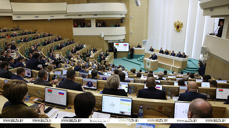 Президент Беларуси Александр Лукашенко в Совете Федерации выступает на тему строительства Союзного государства. Он сам обозначил эту тему, поблагодарив за приглашение выступить, передает корреспондент БЕЛТА.