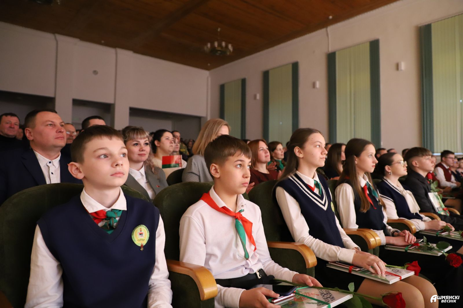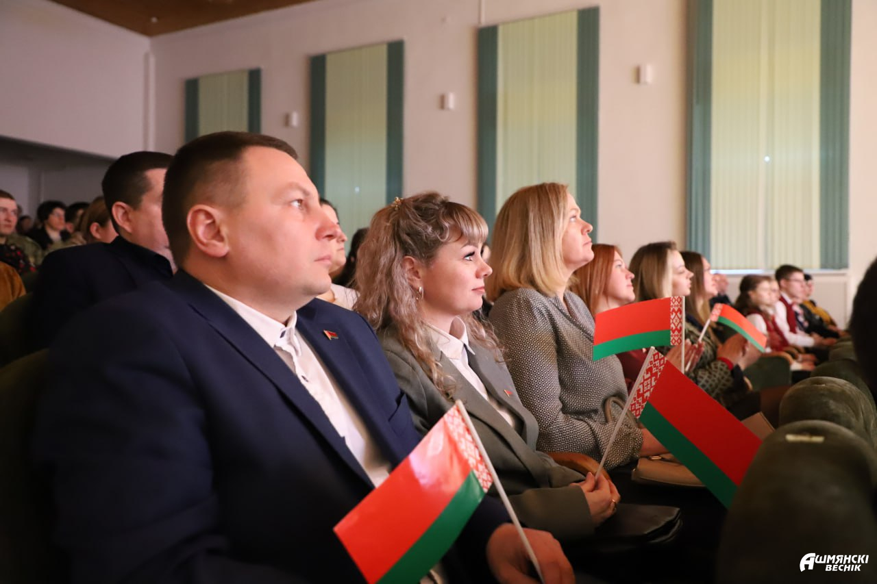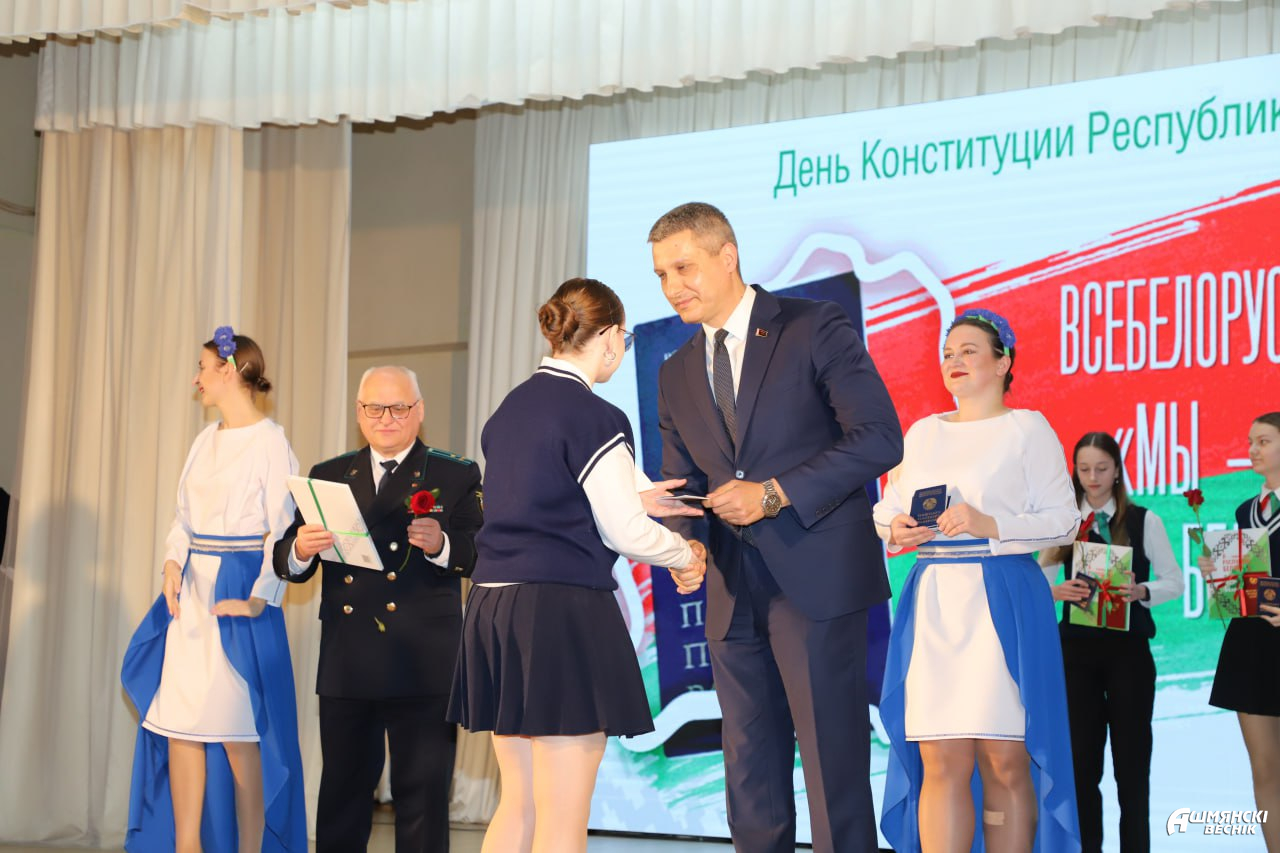 На районной сцене главный документ гражданина нашей страны, Конституцию Республики Беларусь и книгу «Я – гражданин Республики Беларусь» представителям молодого поколения Ошмянщины вручили председатель райисполкома Владислав Гершгорин и прокурор Ошмянского района Сергей Ковальчук.