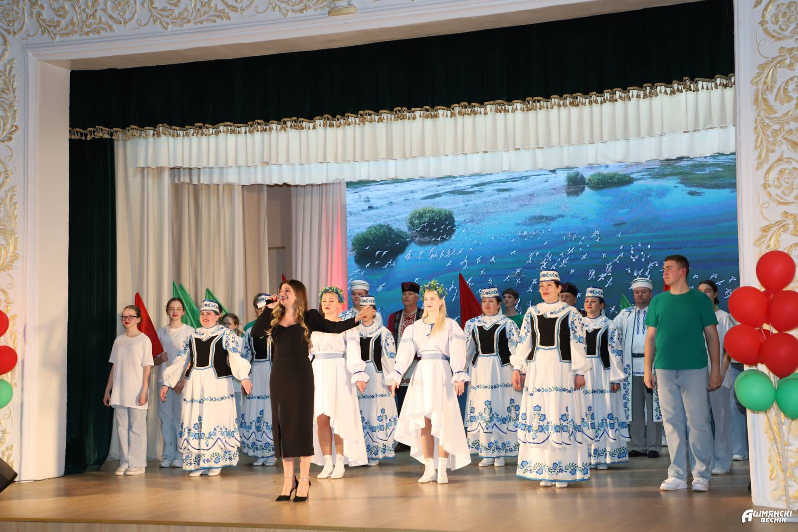 К искренним поздравлениям и пожеланиям в этот день присоединились народный ансамбль песни «Крыніцы», участники народного театра танца и песни «Импульс», народный ансамбль народной песни «Жытніца», народный вокальный ансамбль «Мельница», учащиеся СШ №3, а также Марта Сташкевич и Михаил Щучка.