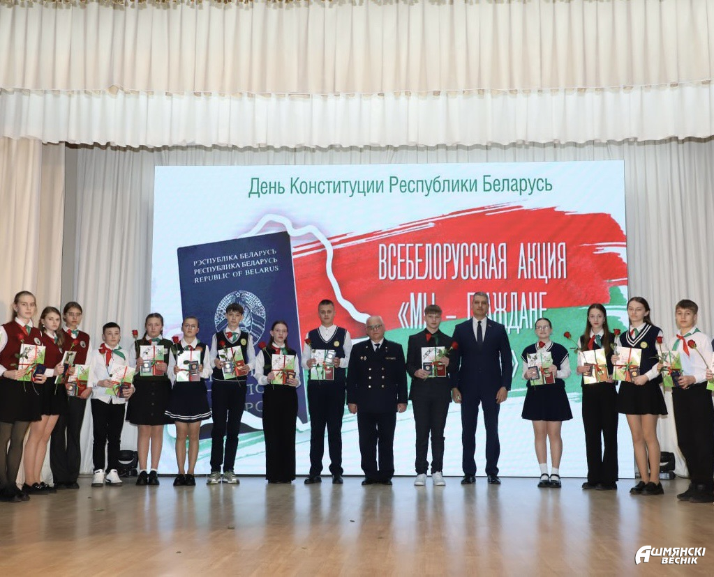 В рамках Всебелорусской патриотической акции «Мы – граждане Беларуси!», которая проходит по инициативе Белорусского республиканского союза молодежи, школьники в торжественной обстановке получили свои первые паспорта. Это юноши и девушки, которым уже исполнилось 14 лет. Важное событие запомнится им на всю жизнь. Несмотря на свой юный возраст, все они уже проявили себя в учебе, науке, творчестве и спорте. Для ребят это не только этап взросления, но и ответственность за себя и будущее страны. Теперь они полноправные граждане Беларуси.