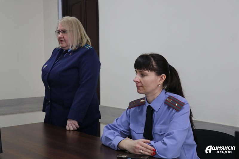 На встрече присутствовали заместитель прокурора Ошмянского района Светлана Малец, настоятель храма Воскресения Христова в Ошмянах Георгий Муха, начальник управления по труду, занятости и социальной защите Ошмянского райисполкома Ирина Губарева, начальник отдела по труду и занятости Татьяна Мамонова, специалисты территориального центра социального обслуживания населения Ошмянского района Ольга Хилинская, Диана Бурдун, врач-психотерапевт Юлия Шлыкович.